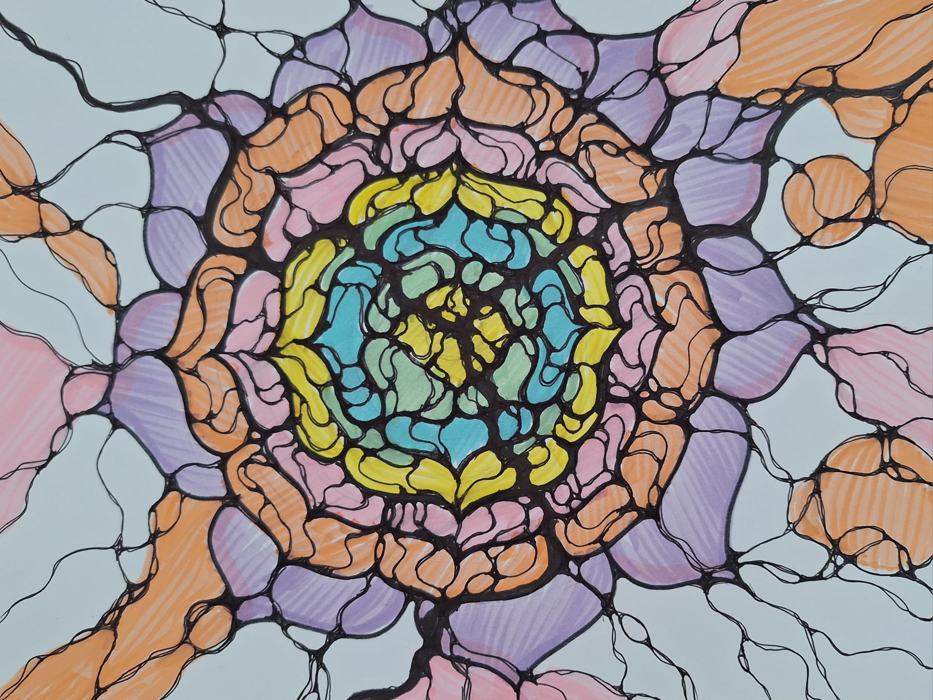 Tratando el problema de bloqueos personales la antigua filosofía de Yoga coincide completamente con la filosofía actual de Neurografía, dejando de lado los conceptos de Bueno y Malo convirtiéndolos en Evolución y bloqueos. Visualizaremos y pintaremos de una manera abstracta nuestro problema o lo que nos impide avanzar hacia el éxito: nuestros miedos, dudas e inseguridades. Y luego, utilizando la técnica neurografía, armonizamos y cambiamos nuestra actitud ante el problema. Nos damos la oportunidad de mirar todo desde el otro lado y tomar la mejor decisión para nosotros y quienes nos rodean.
